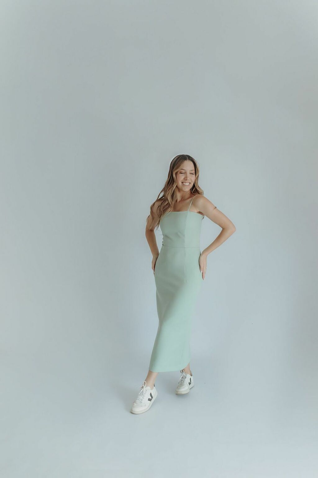 Seu decote reto traz um toque delicado e contemporâneo, enquanto o comprimento midi adiciona um ar de refinamento. Perfeito para ocasiões especiais, ele pode ser combinado com sandálias de salto para um visual clássico ou com acessórios marcantes para um toque de personalidade.